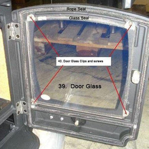 1.4m & 0.3m Remove the old sealing rope from the door (7) and clean any cement & dirt from the rope groove. Run a line of cement along the bottom of the rope groove. Refit a section of Ø8mm rope (CA0802) into the groove with the joint kept to the bottom centre of the door.