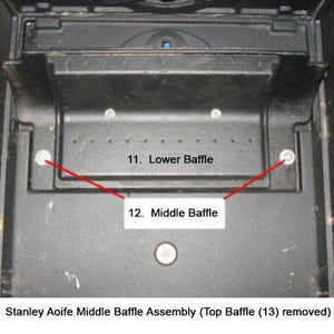 To remove the Middle Baffle assembly (11 & 12), remove the Top Baffle (13) by lifting it at the front edge, pushing it backwards to allow the front tab of the baffle to clear the fixing lug located on the back of the front casting and then letting it drop into the firebox so that it can be removed through the door opening.