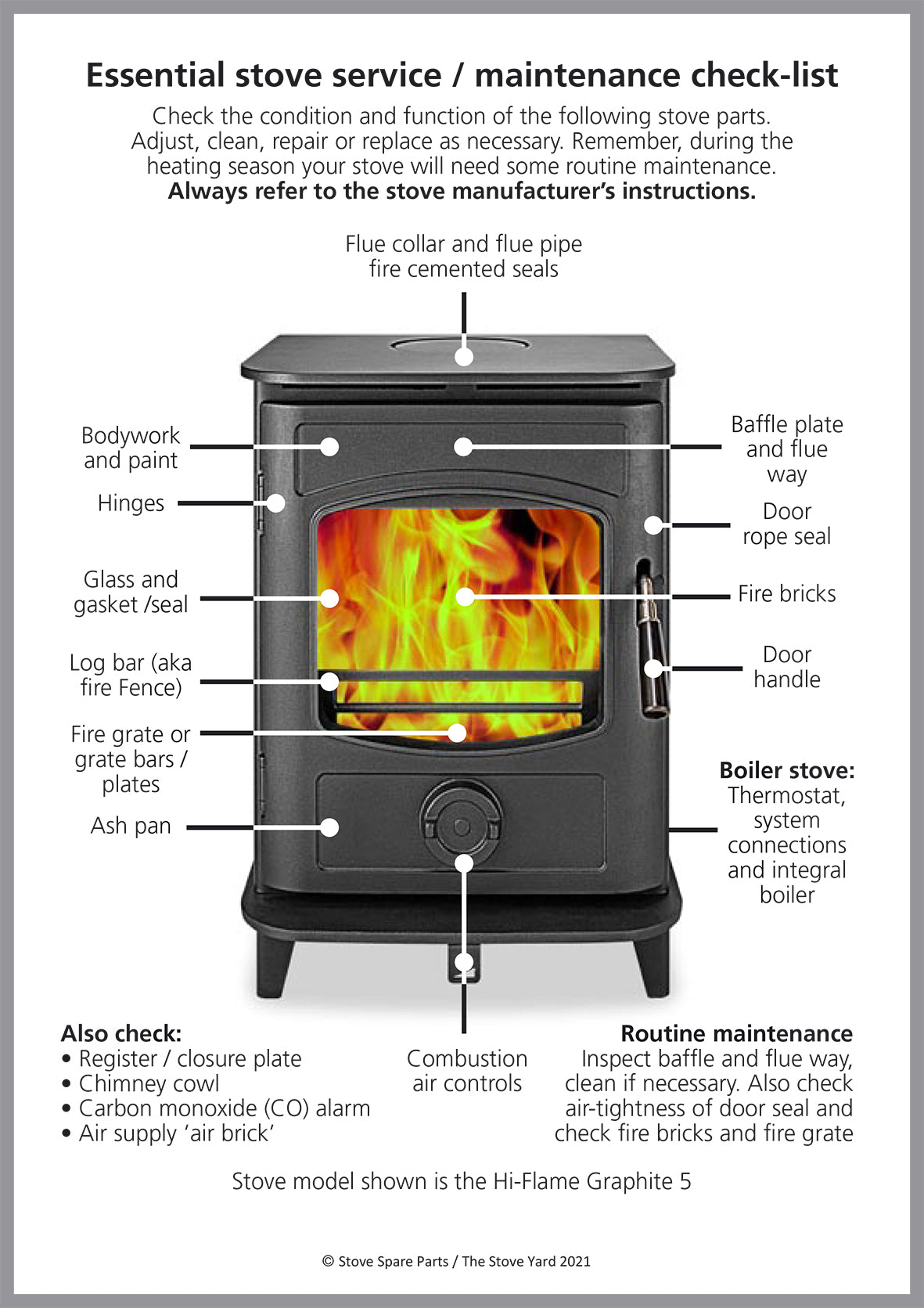 Maintaining and servicing your stove is critically important if you want to keep it operating efficiently and safely. None of it is 'rocket science' so any handy stove owner can easily undertake the basic essentials. The only caveat to this is that if your extended stove warranty terms and conditions stipulate that the service and maintenance of the stove must be carried out by a Hetas registered installer or other approved competent person.